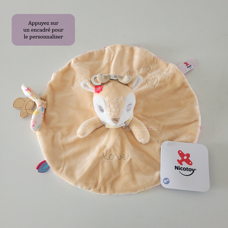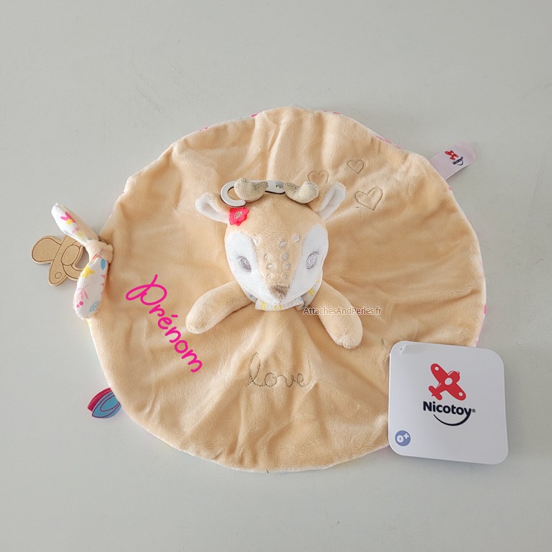 Doudou biche faon à personnaliser avec le prénom de votre choix. Un doudou beau, réconfortant et unique grâce à sa personnalisation. Vous cherchiez LE doudou pour bébé ? C'est celui là qu'il vous faut !
